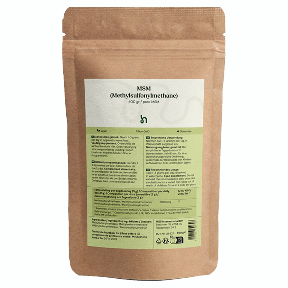 MSM is een vorm van organische zwavel en een lichaamseigen stof. Het vormt een essentieel onderdeel van onder andere onze huid, bindweefsel, haar, gewrichten en nagels. Methylsulfonylmethaan heeft vele positieve eigenschappen en kan onder andere de haargroei, mobiliteit en het behoud van soepele spieren, gewrichten en een gave huid bevorderen.