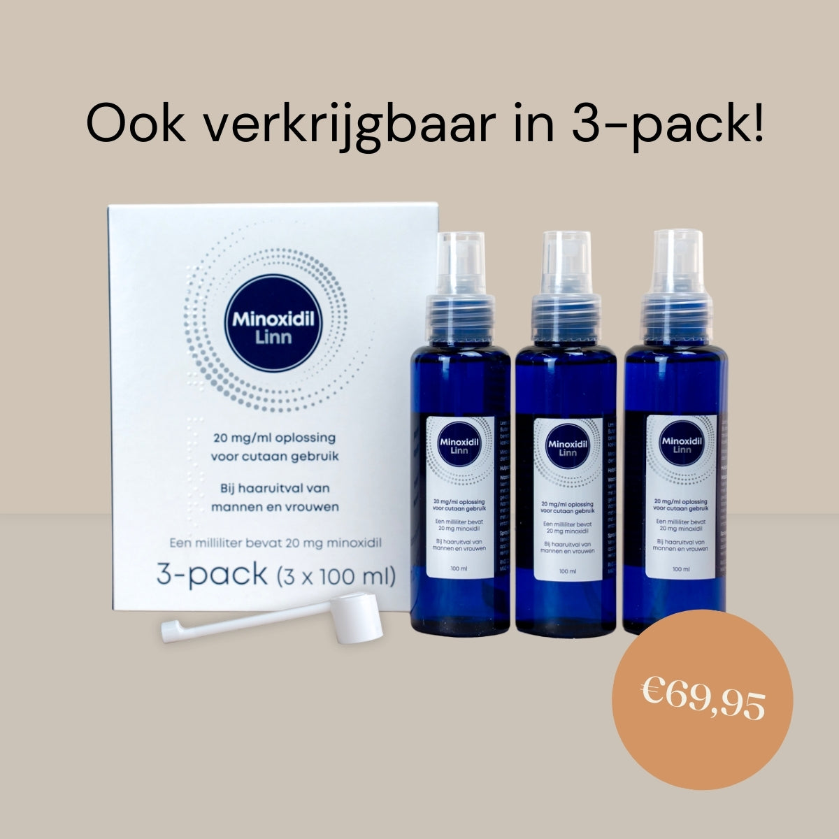 Linn Minoxidil is een haargroeilotion met 2% of 5% Minoxidil, ontwikkeld door Linn Pharma. Dit is een Nederlands bedrijf met meer dan 20 jaar ervaring in cosmetica en gezondheidsproducten. Hun Minoxidil-lotions zijn officieel goedgekeurd voor de Nederlandse markt, voldoen aan strenge kwaliteitseisen en zijn uitgebreid getest op veiligheid en effectiviteit.