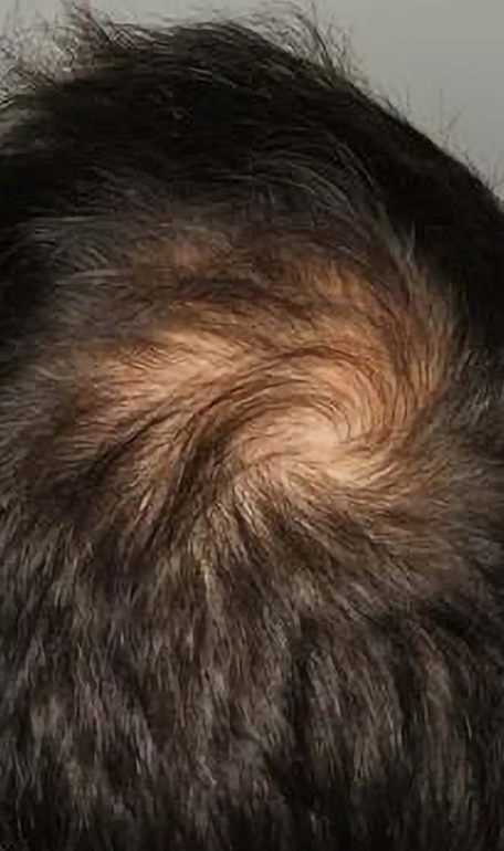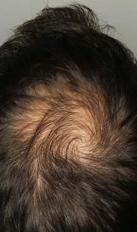 - Fase 2: dun en piekerig haar wordt versterkt. Let op de nieuwe babyhaartjes die verschijnen.